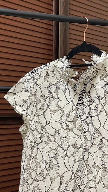- Ткань: фактурное кружево с крупным цветочно-листовым мотивом, местами с прозрачными вставками-сеткой.