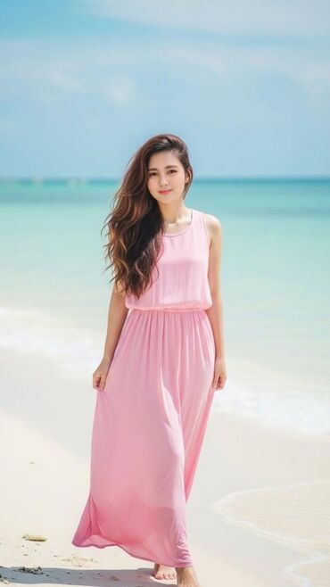 Платье женское макси, нежно-розовый (пудровый) оттенок. - Фасон: свободный А-силуэт, длина до щиколотки. - Талия мягко подчеркнута, подходит для комфортной посадки на разной фигуре, в том числе с...