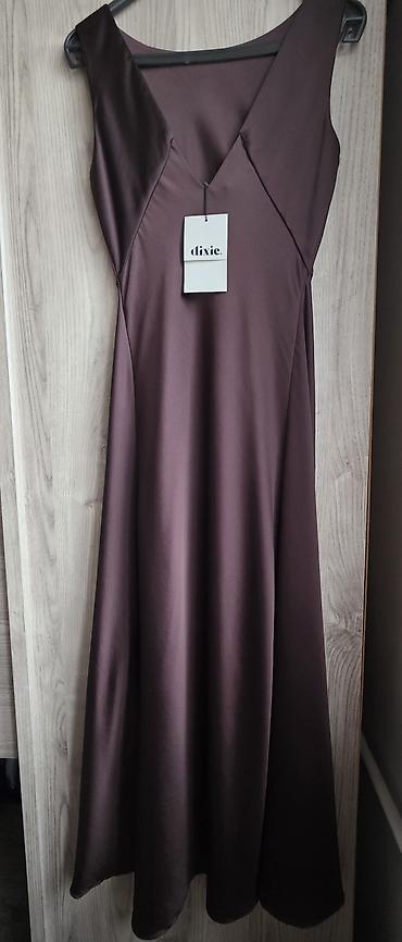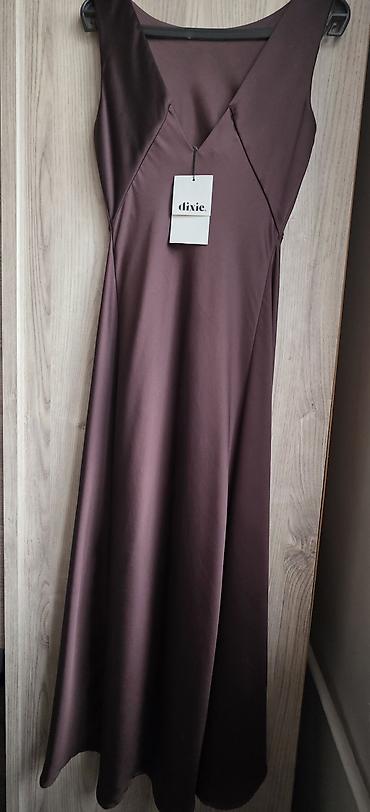 Вечернее платье, А-силуэт, Длинная модель, Атлас, Без рукавов, S