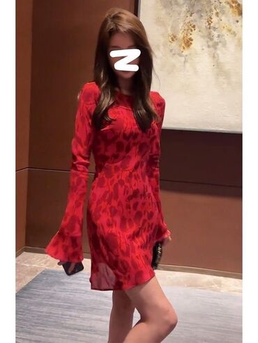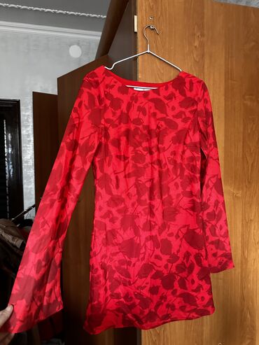 Платье женское, вечернее, насыщенного бордово‑красного цвета. Особенности: - Длина миди. - Верх с длинными рукавами и воротником‑бантом с удлиненными лентами. - Акцент на талии, плавный приталенны...