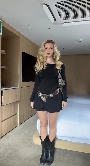- Стиль: коктейльный/вечерний, подойдет для выхода, свидания, вечеринки; легко сочетается с ковбойскими ботинками, сапогами, лодочками.