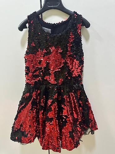 Нарядное детское платье с пайетками и бантом - Модель: расклешённое платье с длинным рукавом - Верх: полностью расшит крупными пайетками, перелив красного и чёрного цветов - Юбка: пышная, со слоям...