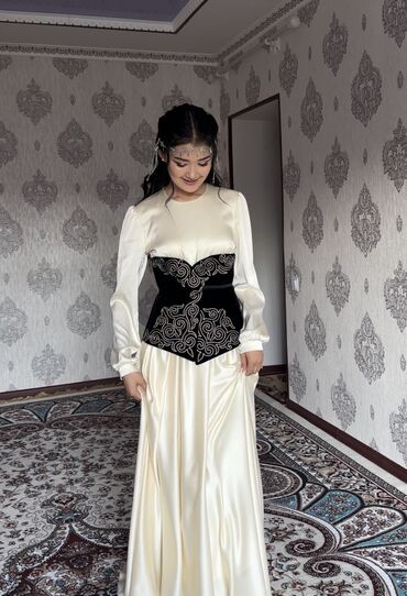 Продаю Женский национальный комплект из бархата с вышивкой. Состав набора: - жилет без рукавов на крючках/петельках спереди; - расклешённая юбка средней длины с запахом спереди. Материал: плотны...