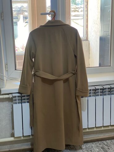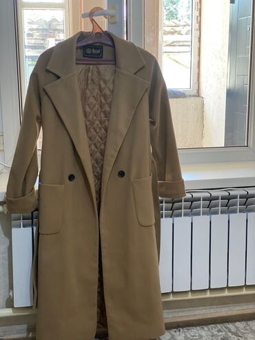 Элегантное женское пальто бежевого цвета, выполненное в классическом стиле. Модель имеет двубортный крой с широкими лацканами и застежку на две пуговицы. В комплекте пояс, который подчеркивает талию. Удобные накладные карманы расположены по бокам. Длина миди делает его универсальным для различных образов. Стеганая подкладка обеспечивает дополнительное тепло и комфорт в прохладную погоду.