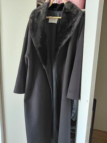 Элегантная классика в total black: теплый меховой лацкан подчеркивает линию декольте, пояс акцентирует талию. Подходит для деловых и вечерних образов, сочетается с каблуками и высоким сапогом.
