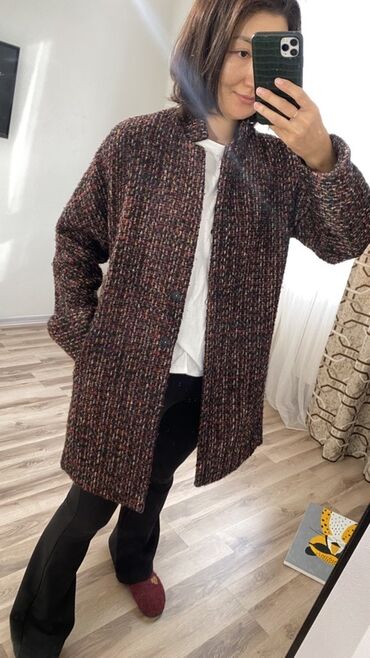 Стильное универсальное пальто для межсезонья: хорошо сочетается с джинсами, брюками и базовыми топами. Тёплая фактура и нейтральная гамма делают изделие подходящим как для повседневных образов, так и для делового стиля.