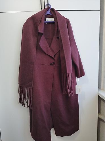 - В комплекте длинный шарф с кисточками в тон пальто