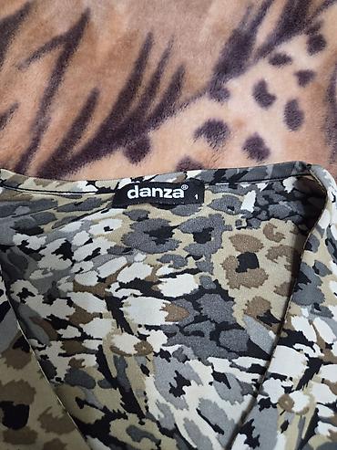 - Верх: принт «леопард/камуфляж» в бежево‑серо‑чёрной гамме, V‑образный запах, короткий рукав.