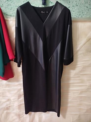 - Черное платье прямого кроя до колен. V-образный вырез, декоративные вставки под кожу, создающие V-образный оптический эффект спереди. Рукав до локтя, мягкая драпировка, универсально для офиса и вечерних выходов.