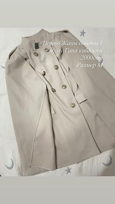 2) Пончо светло-бежевое с декоративными золотистыми пуговицами, без воротника.