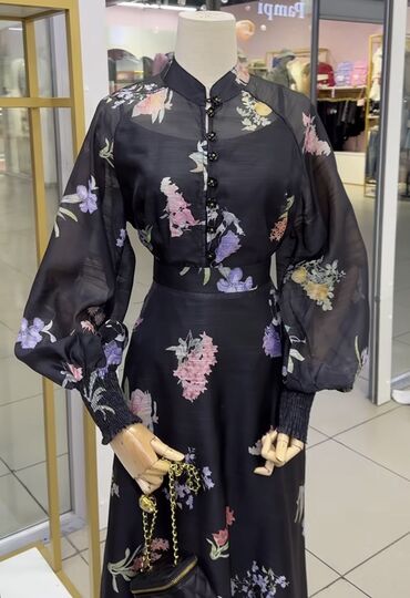 Итальянское Стильное платье с цветочным принтом отличного качества по хорошей цене❤️ - Модель: А-силуэта, идеально для осени и зимы - Декор: возможно сочетать с длинными бусами (на фото) - Ткань...