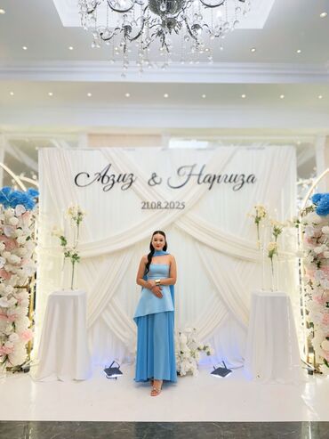 2) Голубое вечернее платье: