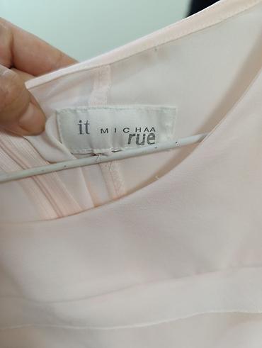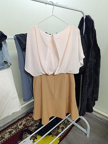 Платье от it Michaa Rue с короткими рукавами и свободной верхней частью нежно-розового цвета. Юбка трапециевидной формы, длиной до колена, выполнена в бежевом оттенке. Легкий и элегантный вариант для создания женственного образа.