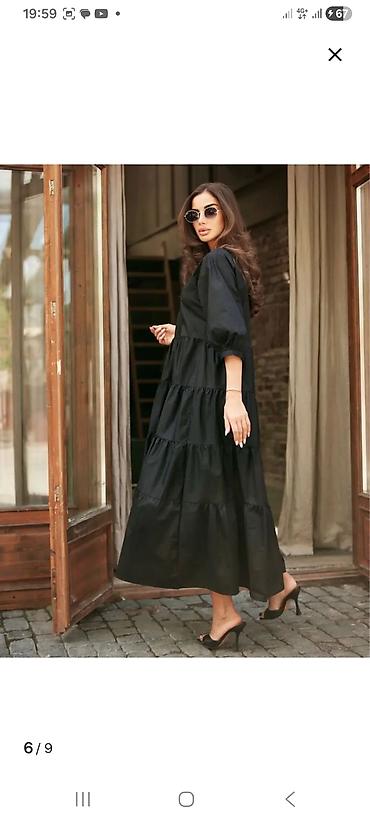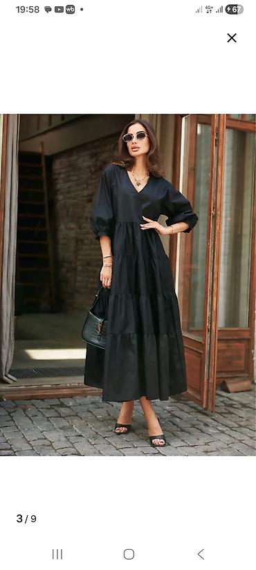 Акценты образа: базовый черный цвет, легкая посадка, женственный объем рукавов и актуальная длина макси. С вопросами желательно писать на ватсап.