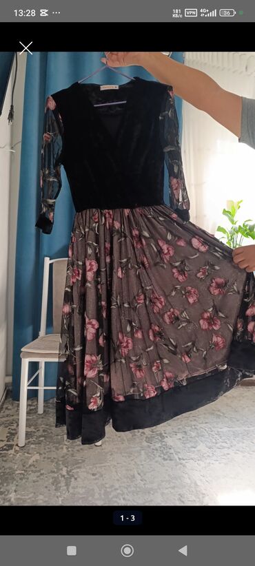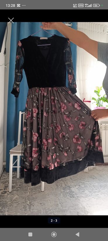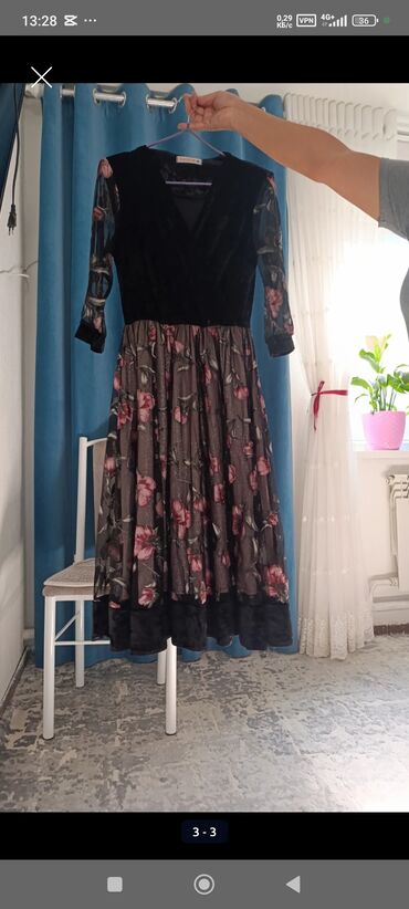 Вечернее платье, Коктейльное, Велюр, С рукавами