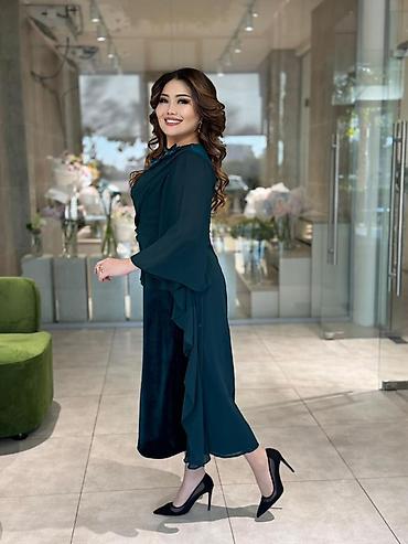 - Силуэт: миди, прямой низ с лёгкими асимметричными оборками по бокам, акцент на талии драпировкой.