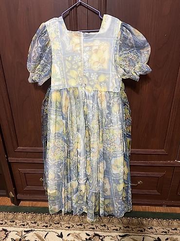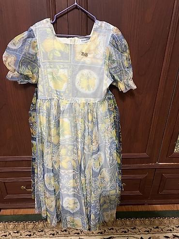 - Принт: пэчворк с плиточной росписью и цитрусами (лимоны), оттенки голубого, желтого и белого.