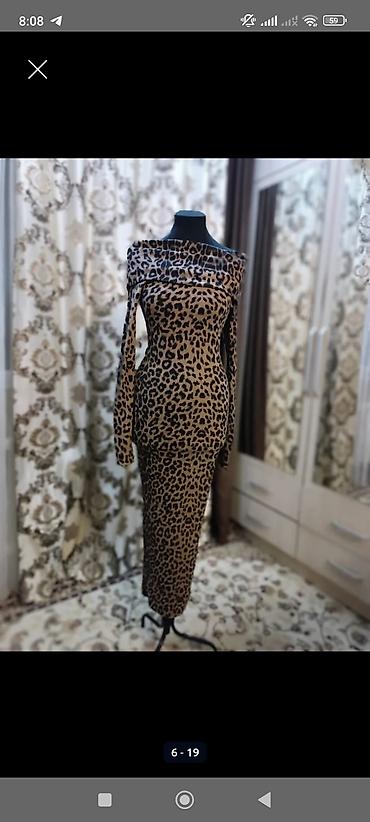 - Леопардовое платье: плотный эластичный трикотаж, принт «леопард», длина миди/макси, свободная драпированная горловина-отворот, длинные рукава.