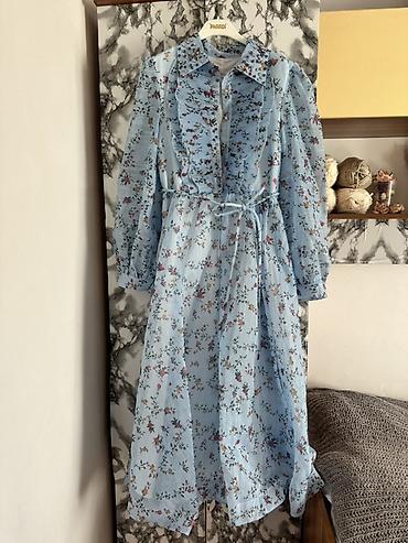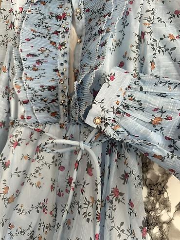Платье под Зиммерман голубого цвета с цветочным принтом. - Длина