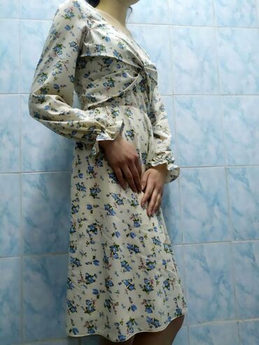 - Принт: мелкие голубые и розовые цветы на молочно-беже-вом фоне.