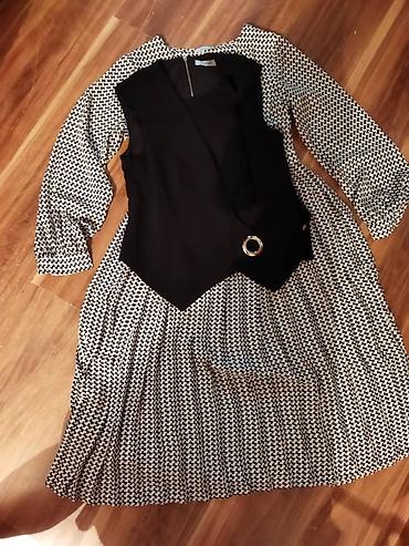 Платье с жилетом, комплект 2-в-1. - Платье миди с принтом «гусиная