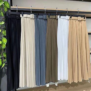 Подойдут для повседневных, офисных, праздничных и кэжуал образов. Совмещаются с лодочками, кедами, блузами и базовыми футболками. Цвета: пудрово-розовый, лаймово-зеленый, серый, черный. Размеры визуально рассчитаны на среднюю посадку по талии.