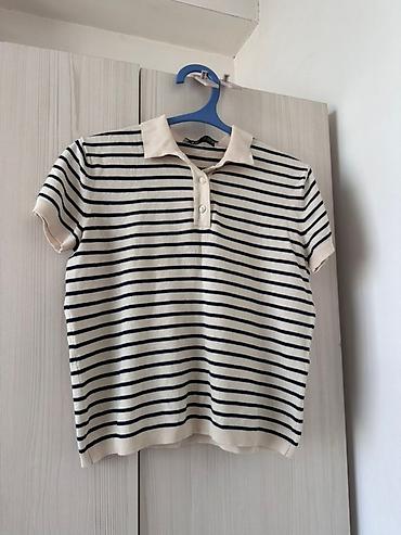 Трикотажное женское поло в морском стиле ЗАРА - Цвет: молочный с