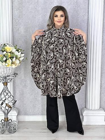 - Фасон: свободная накидка-пончо с расклёшенным силуэтом и эффектом «крыло», рукава без чёткой оката, удобная посадка.