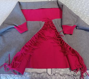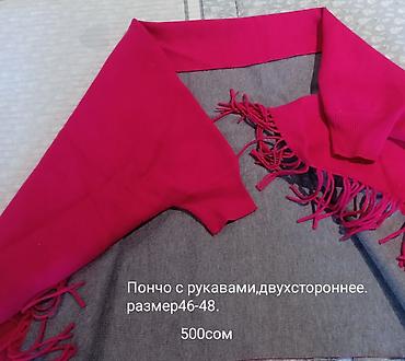 Пончо-накидка с меховой отделкой ТОЛЬКО БОЛЬШОЕ! Надето 2-3 раза - Цвет: молочный с контрастной коричневой опушкой - Крой: свободный А-силуэт, укороченная длина до бёдер/середины бедра - Застёжка...
