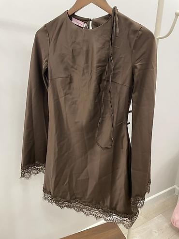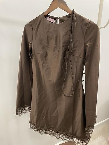 Шелковистое платье-туніка шоколадного оттенка с кружевной отделкой.