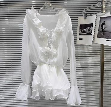 Белое шифоновое платье-мини с романтическими рюшами