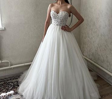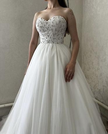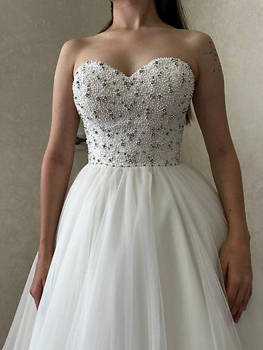 Свадебное платье, S, С корсетом, Фатин, Пышное, Жемчуг, Б/у