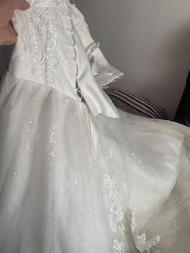 Отдам за 500$ Свадебное платье корсетного типа с пышной юбкой и длинным шлейфом в подарок длинная фата. - Силуэт: бальное (пышная юбка, выразительная талия). - Верх: корсет без бретелей с плотной...