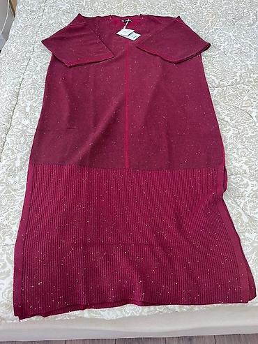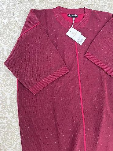 Вязаное платье-свитер бордового цвета с блеском