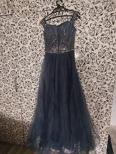 Вечернее платье, Длинная модель, Полиэстер, Без рукавов, Стразы, S