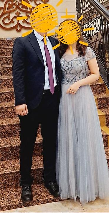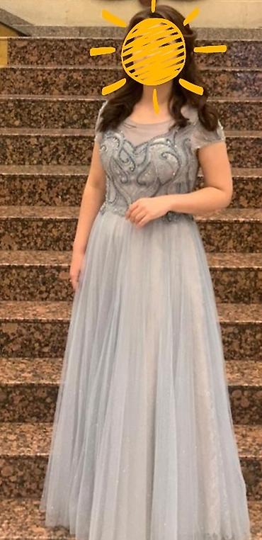 Вечернее платье в пол размер 42-44 (S), нежно-голубого/серо-голубого оттенка.
