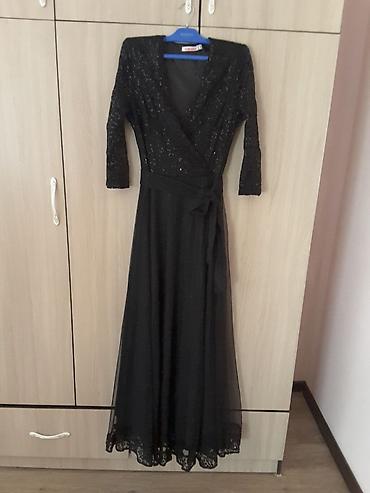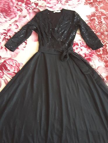 Вечернее черное платье в пол с паетками и кружевом. Надевала пару раза. 46 -й размер