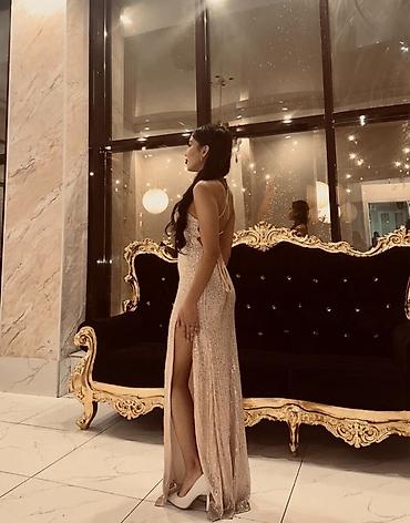 Вечернее платье в пол с пайетками, нюдово-шампанское