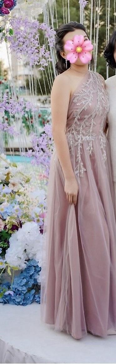 Вечернее платье в пол, пудрово-розовый оттенок. А-силуэт, многослойная воздушная сетка/фатин поверх подкладки создает легкий объем и мягкие складки по низу. Ассиметричный верх на одно плечо. Лиф декорирован вышивкой и аппликациями с сияющими пайетками/бисером в виде веточек, плавно переходящими к линии талии. Спинка закрытая, плавный пройма-халтер. Юбка свободная, струящаяся, обеспечивает красивое движение. Идеально для выпускного, торжеств, свадебных церемоний и вечеринок в дресс-коде black tie. Цвет и крой гармонично подчеркивают фигуру и подходят к серебристым аксессуарам.