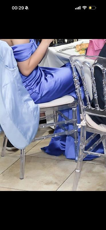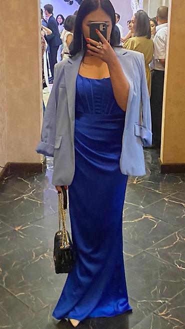Атласное вечернее платье в пол, насыщенного королевского‑синего цвета.