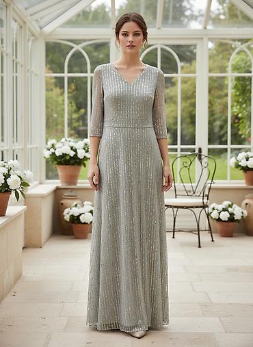 Вечернее платье - Элегантное длинное платье в благородном серо‑лавандовом оттенке - Свободный А‑силуэт, мягко драпируется и стройнит - Закрытый верх с длинными рукавами - Эффектная накидка/пелерин...
