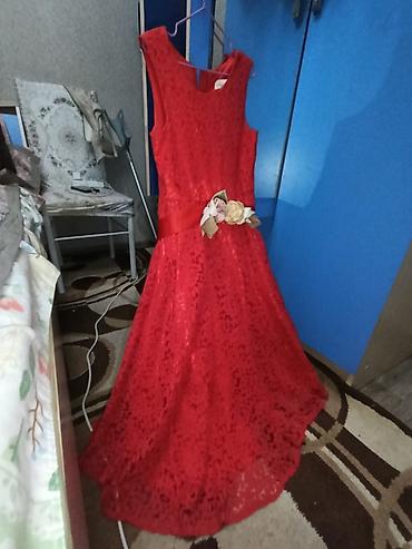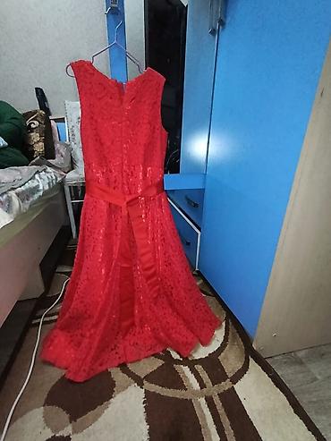 Вечернее платье в красном цвете, без рукавов, длина в пол.