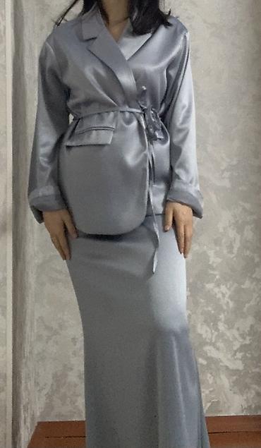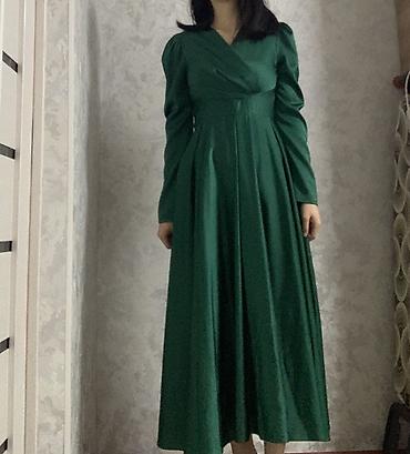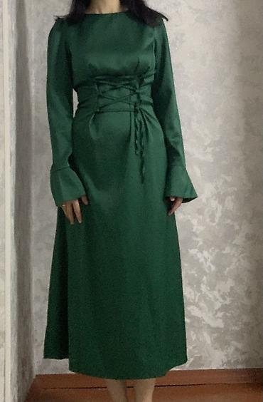 Платья и костюм из атласной ткани 1) Зеленое платье с корсетной