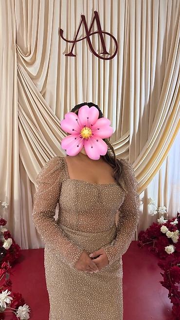 Вечернее платье в пол с длинными рукавами, расшитое россыпью мелких