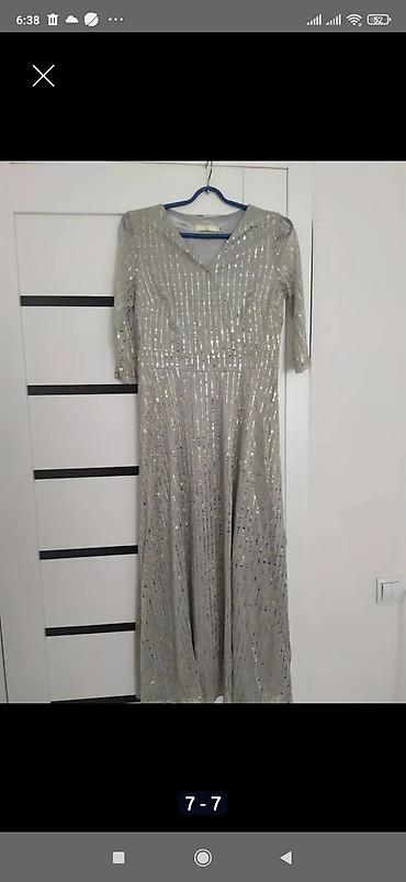 Нарядные платья для особых случаев. 1) Платье в оттенке холодной лаванды: - Длина макси, прямой свободный силуэт - Верх из сетки с объемной вышивкой и пайетками, цветочный узор - Рукава 3/4 из про...