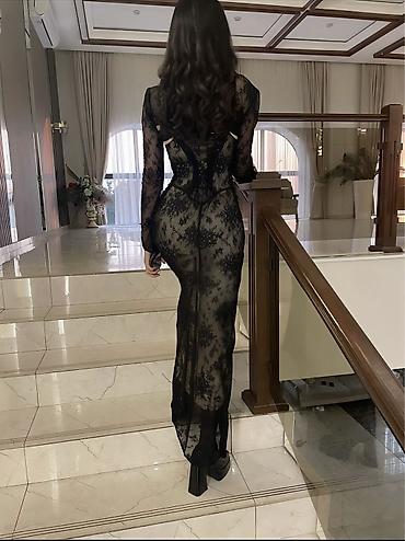 Ажурное длинное платье в пол из полупрозрачного кружева.