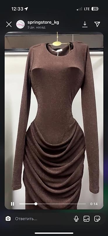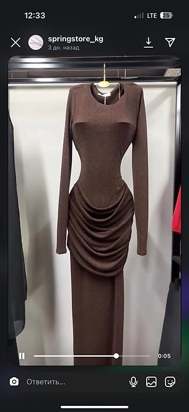Платье вечернее, облегающее, макси длины в шоколадно-коричневом цвете с лёгким мерцанием.