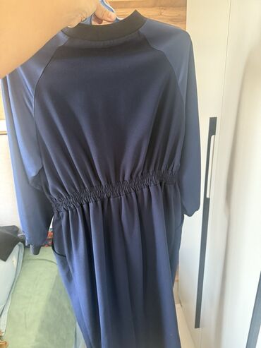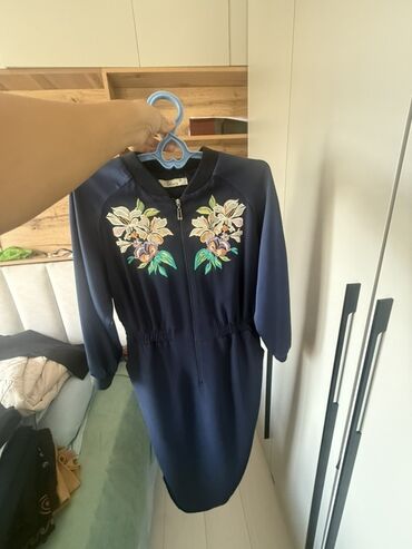 Платье-миди темно-синего цвета с вышивкой. Турция