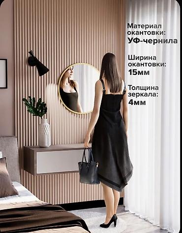 Зеркало, Россия, 4 мм толщина. Простая обточка, с подсветкой, в рамке, панно. От 2 500 сом/м2. Доставка и установка по Бишкеку и регионам.