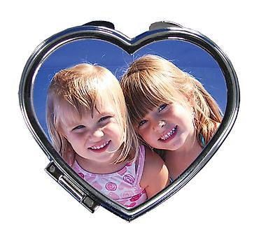 Зеркало карманное в виде сердца или круглые с Вашим фото. Фото не стирается, печать идет на металл, качество зеркал высокое, изготовление один час.
